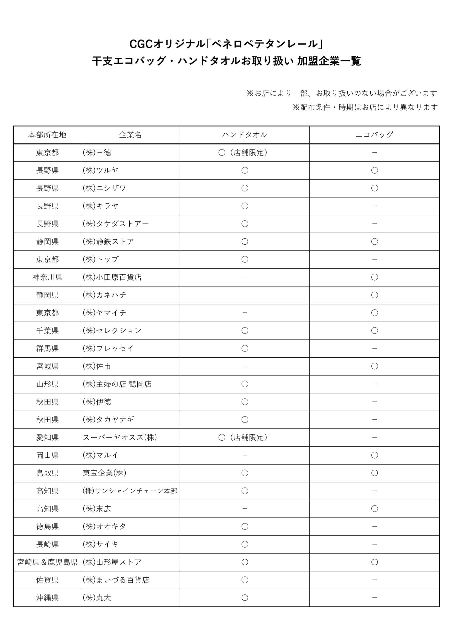 「うっかりペネロペ」の干支エコバッグ・ハンドタオル 取り扱い店舗一覧