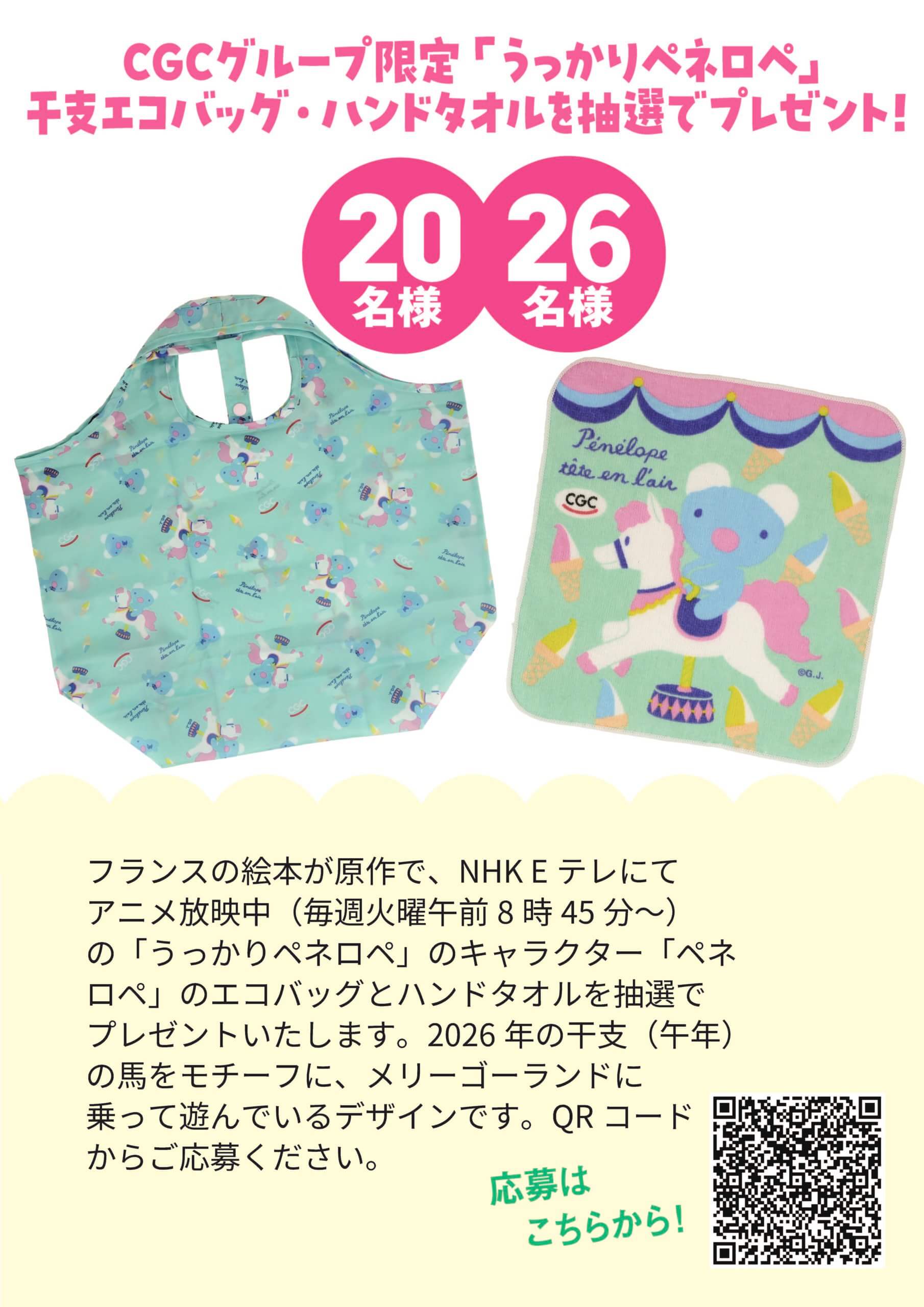 CGCグループ限定「うっかりペネロペ」の干支エコバッグ・ハンドタオルプレゼントの抽選企画の応募受付中!