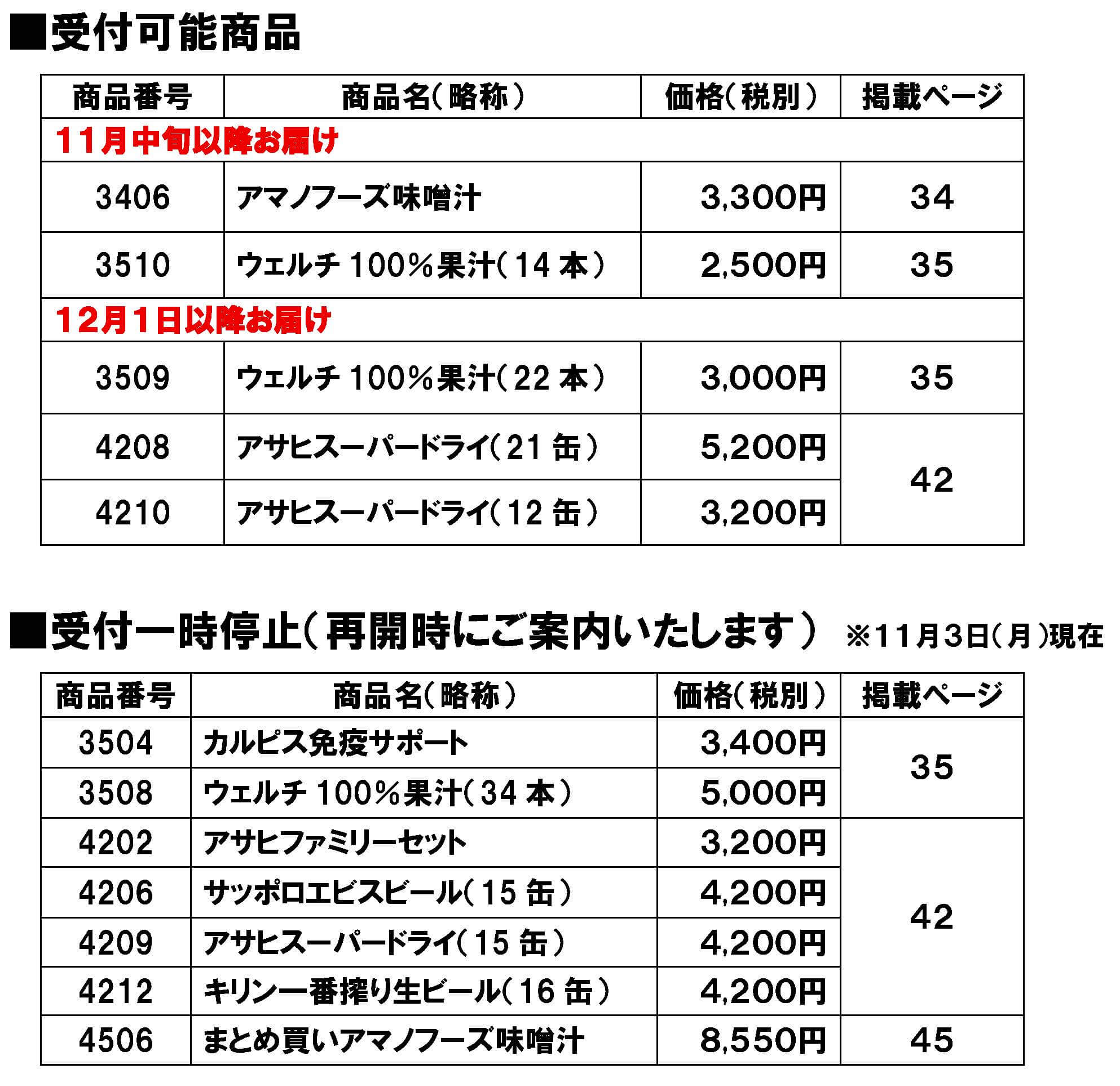 9月末に発生しましたアサヒグループHDに対するサイバー攻撃により、アサヒグループ各社の商品およびビール会社の一部商品が一時出荷停止となっております。その影響により、CGCグループ『冬ギフト』掲載の以下10品の受注を一時停止しております。 販売再開の目途がたちましたら、あらためてご案内させていただきます。