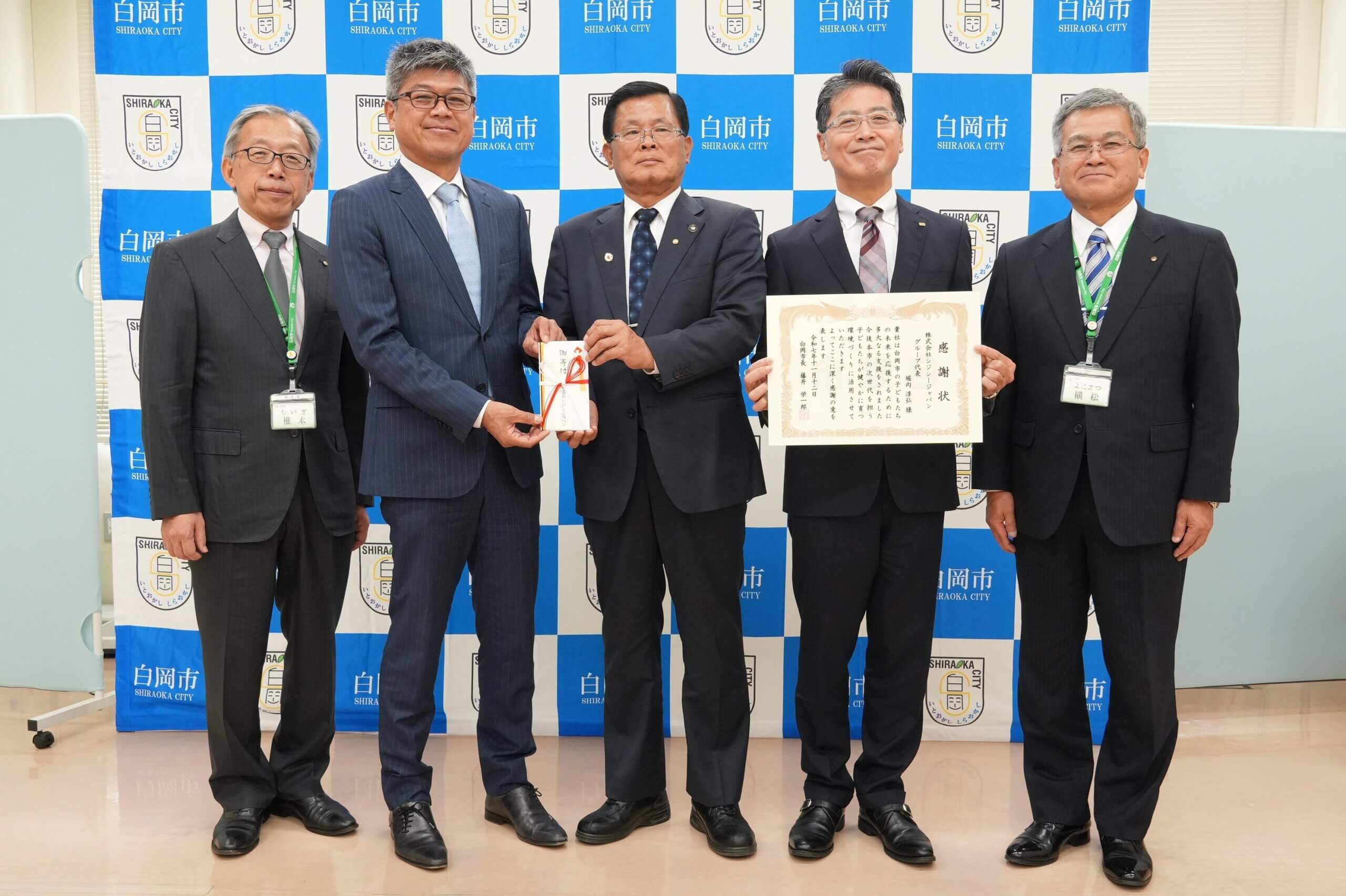 本日12日、白岡市を訪問し、寄付金を贈呈しましたのでご報告いたします。
