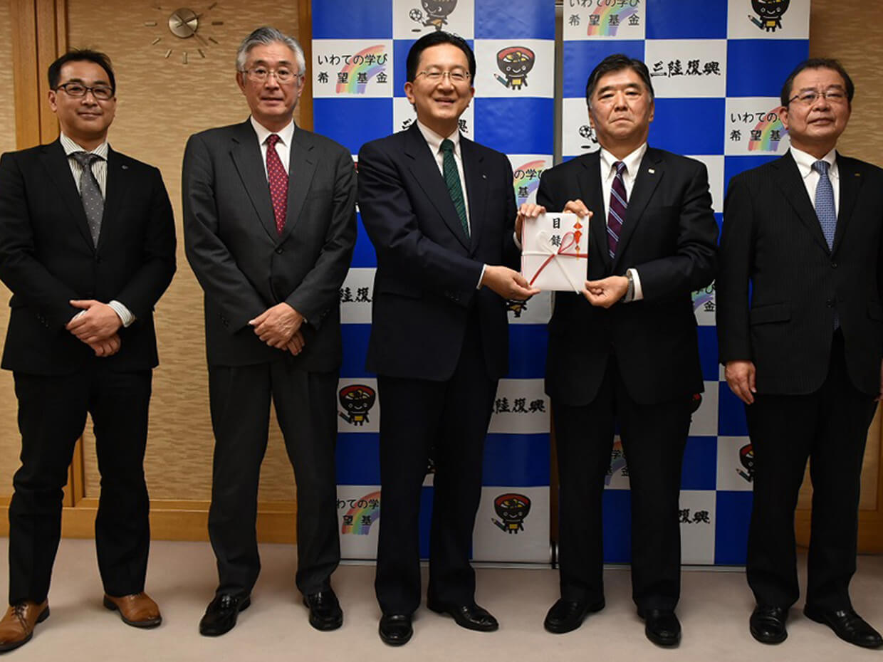 本日、CGCグループの代表者が岩手県庁を訪問し、寄付金218万320円を達増拓也知事にお届けしました。寄付金は同県の「いわての学び希望基金」を通じて被災された子ども達への支援などに役立てられます。